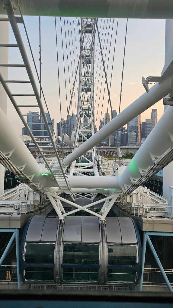 Though the flyer may not seem too impressive from a distance, the experience changes dramatically when you’re up close, standing at its base. It’s fascinating how the surrounding tall buildings somewhat diminish the apparent size of the wheel, but as you approach, you realize it’s quite imposing, much like the iconic London Eye. While the tickets may seem a bit steep, especially in a city known for its higher costs, they include admission to the captivating Time Capsule exhibition, a prelude to the exhilarating ride. This insightful exhibition showcases the remarkable journey of the city-state, from its modest beginnings to its current stature as a global powerhouse, providing visitors with a deeper appreciation for the rich history and vibrancy of Singapore.