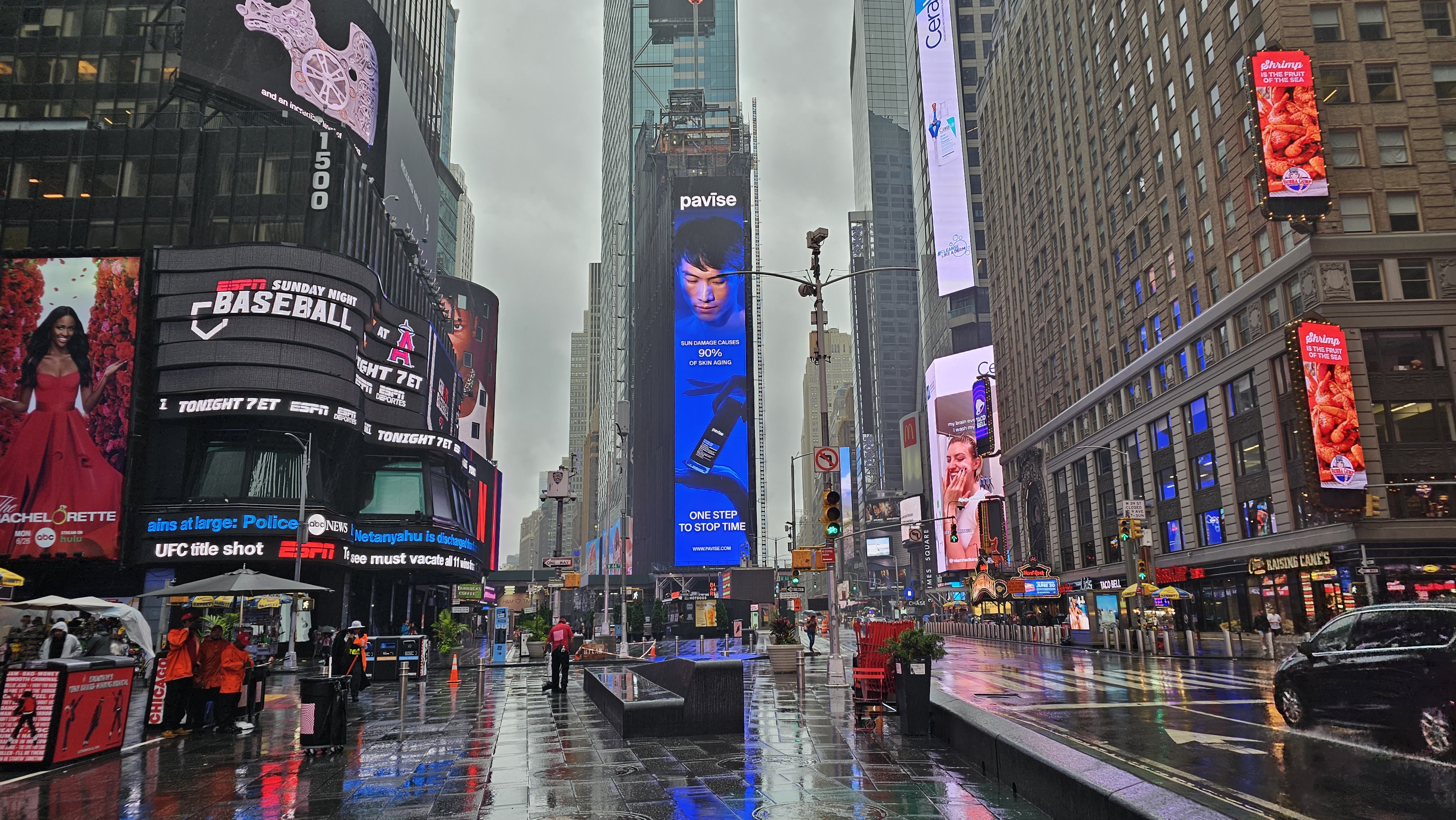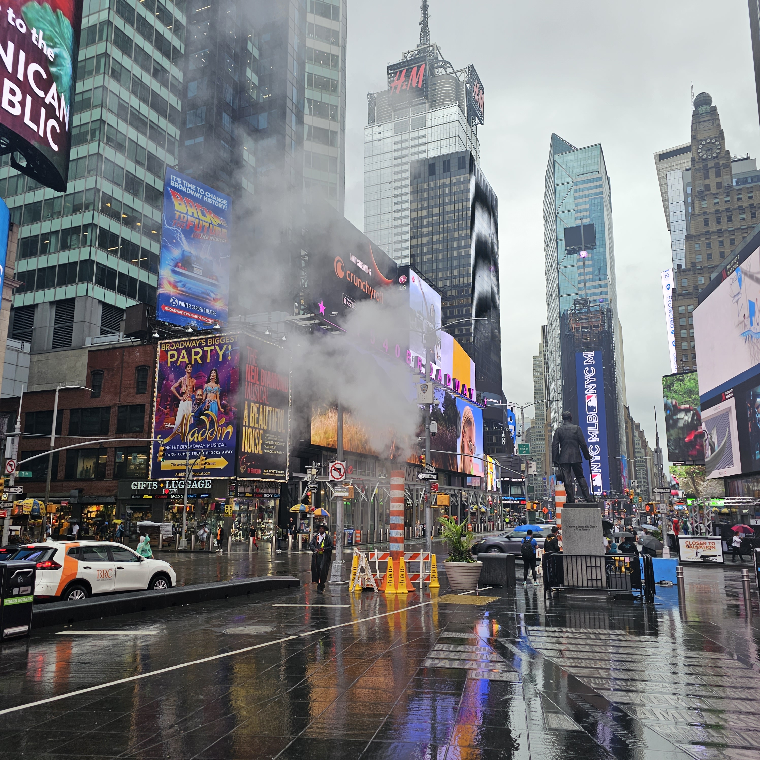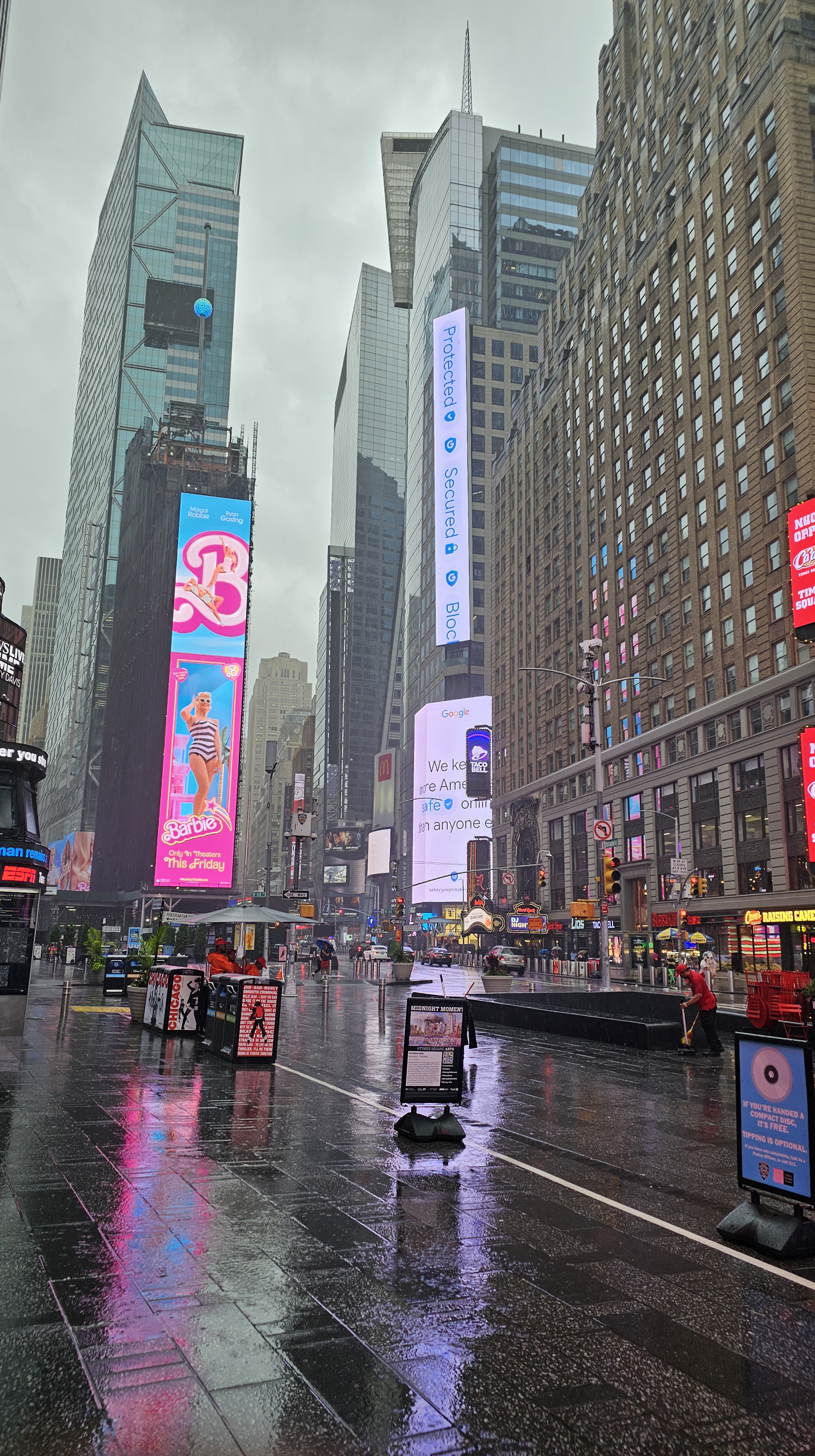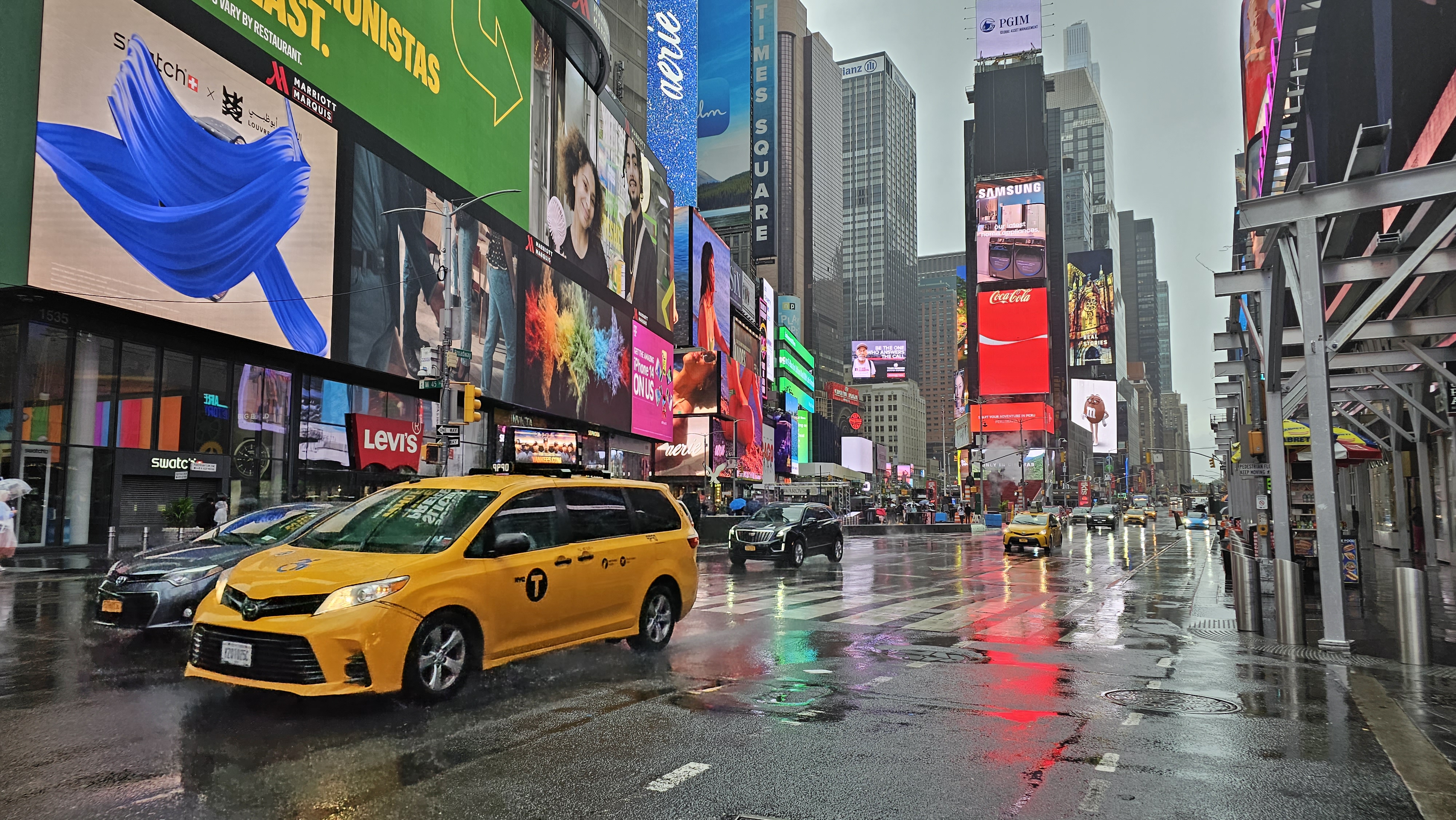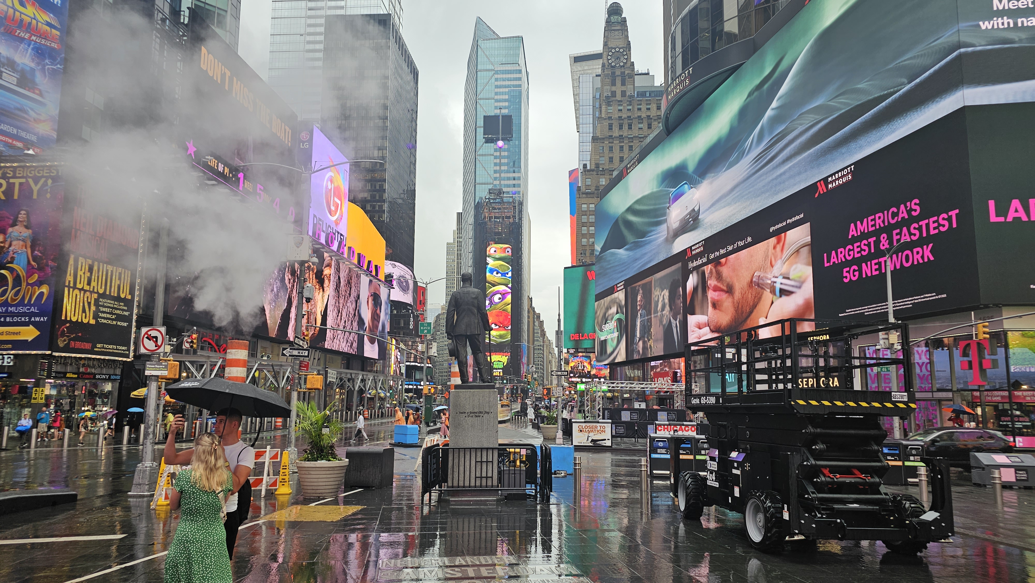 The weather during my visit wasn’t ideal—when it rains in New York, it pours! While the rain wasn’t exactly helpful, it did provide an excellent backdrop for the neon lights. Times Square can feel pretty intense in the evenings, and to be honest, it’s not always the most enjoyable experience. It’s packed with crowds, and street performers are constantly vying for your attention.