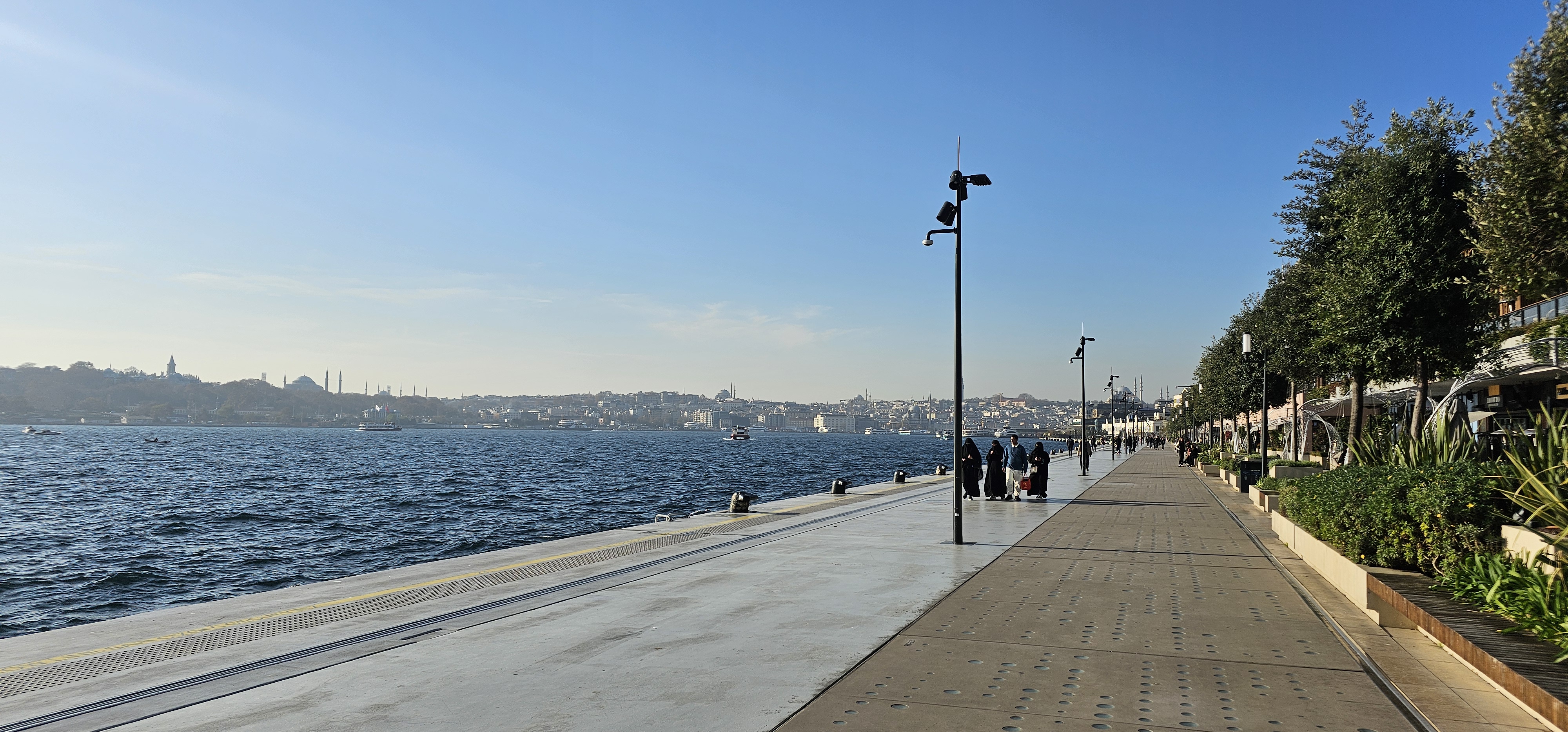 Capturing this location on camera is an absolute delight. From the sleek, modern apartments to the expansive promenade stretching along the glistening sea, every corner offers a postcard-worthy view. If I were a local, this would undoubtedly be my jogging route of choice! Picture this: the famous mosques silhouetted against the horizon on one side, and the iconic Emaar skyscraper standing tall on the Asian shore on the other.