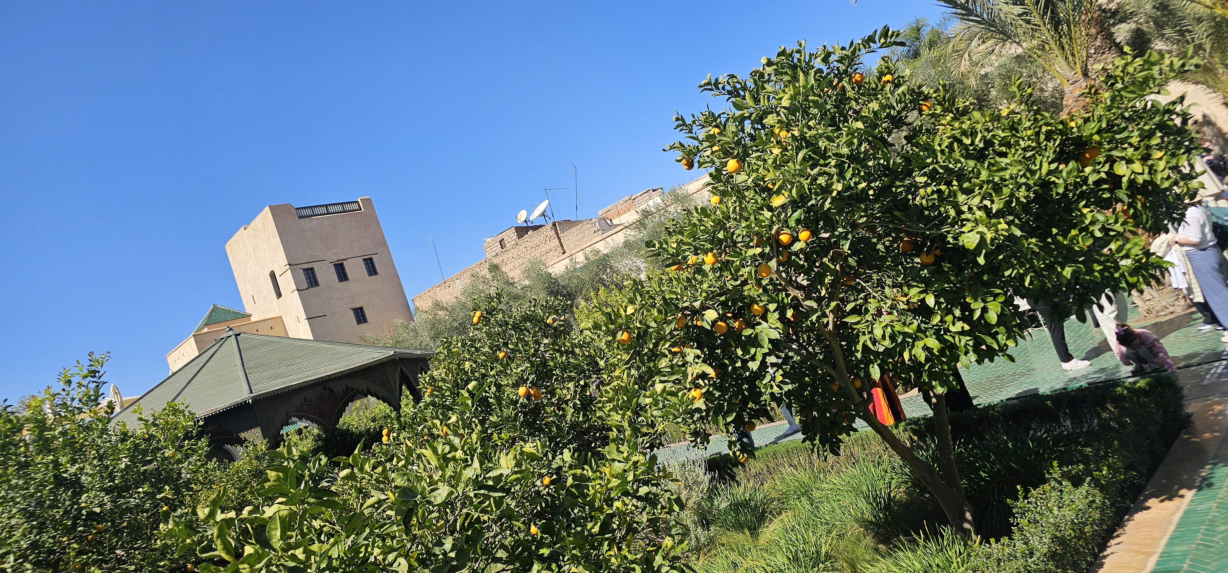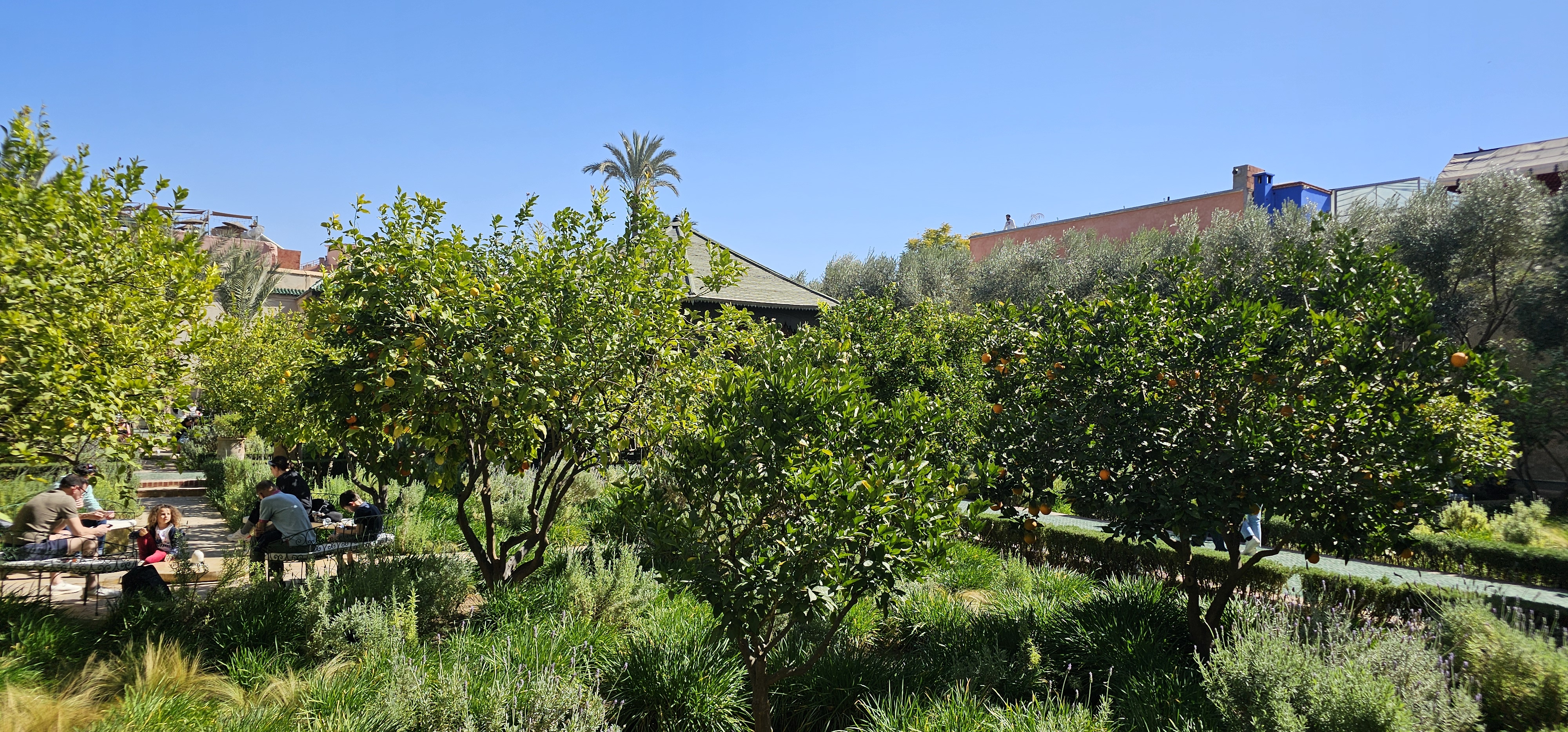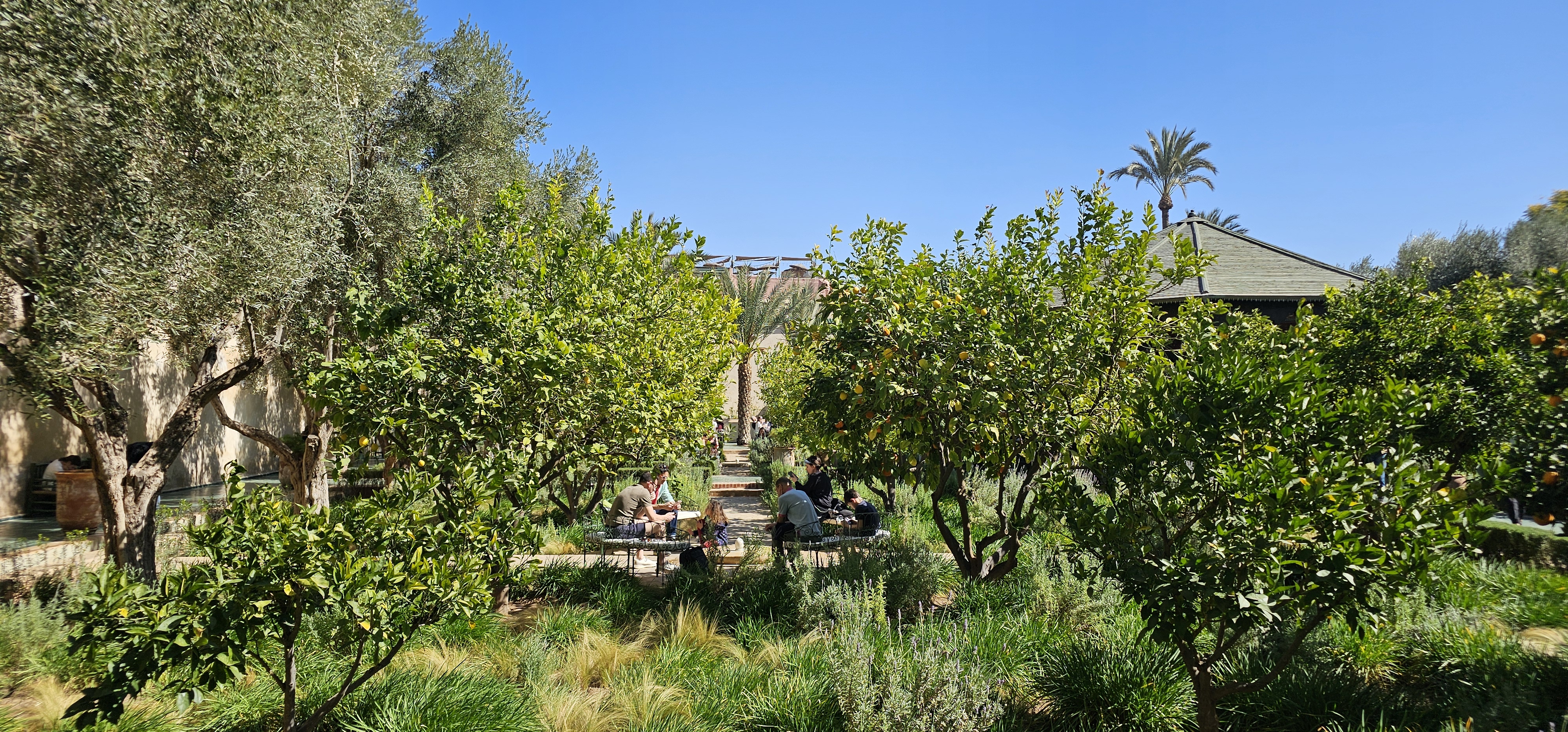 But it’s the main garden that steals the show. The central courtyard boasts a lovely canopy, while paths are lined with blooming orange trees, filling the air with a fresh, citrus scent. Follow the flowing stream of water to trace its journey from the nearby Atlas Mountains, as it winds through this beautiful oasis. Don’t miss the terrace at the far side—offering an elevated view that takes in the entire garden and the iconic rooftops of Marrakech’s Red City.