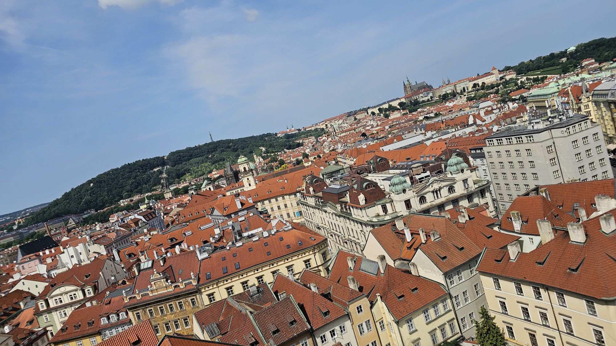 - Prague Castle – perched on the western horizon across the Vltava River.