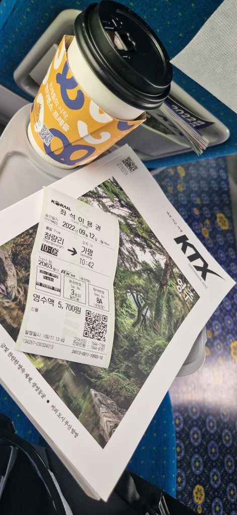 Nami Island is located about 40 miles east of Seoul, so you won’t be able to reach it directly by metro. Instead, several train routes can get you there. We chose to depart from Cheongnyangni Station, where you can purchase tickets to Gapyeong Station, the closest stop to Nami Island. The journey takes roughly 40 minutes, and if the train isn’t too crowded, you may be able to reserve seats. On busier trains, however, standing might be necessary. A one-way ticket costs just 5,700 Won (around £3), making it an affordable and convenient option.
