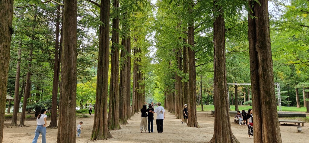 Our next destination was Metasequoia Lane, made famous by the K-Drama Winter Sonata. There’s even a statue commemorating the show. The path itself is lined with towering redwood Metasequoia trees, creating a dramatic yet romantic setting—it’s easy to see why it became such an iconic filming location.